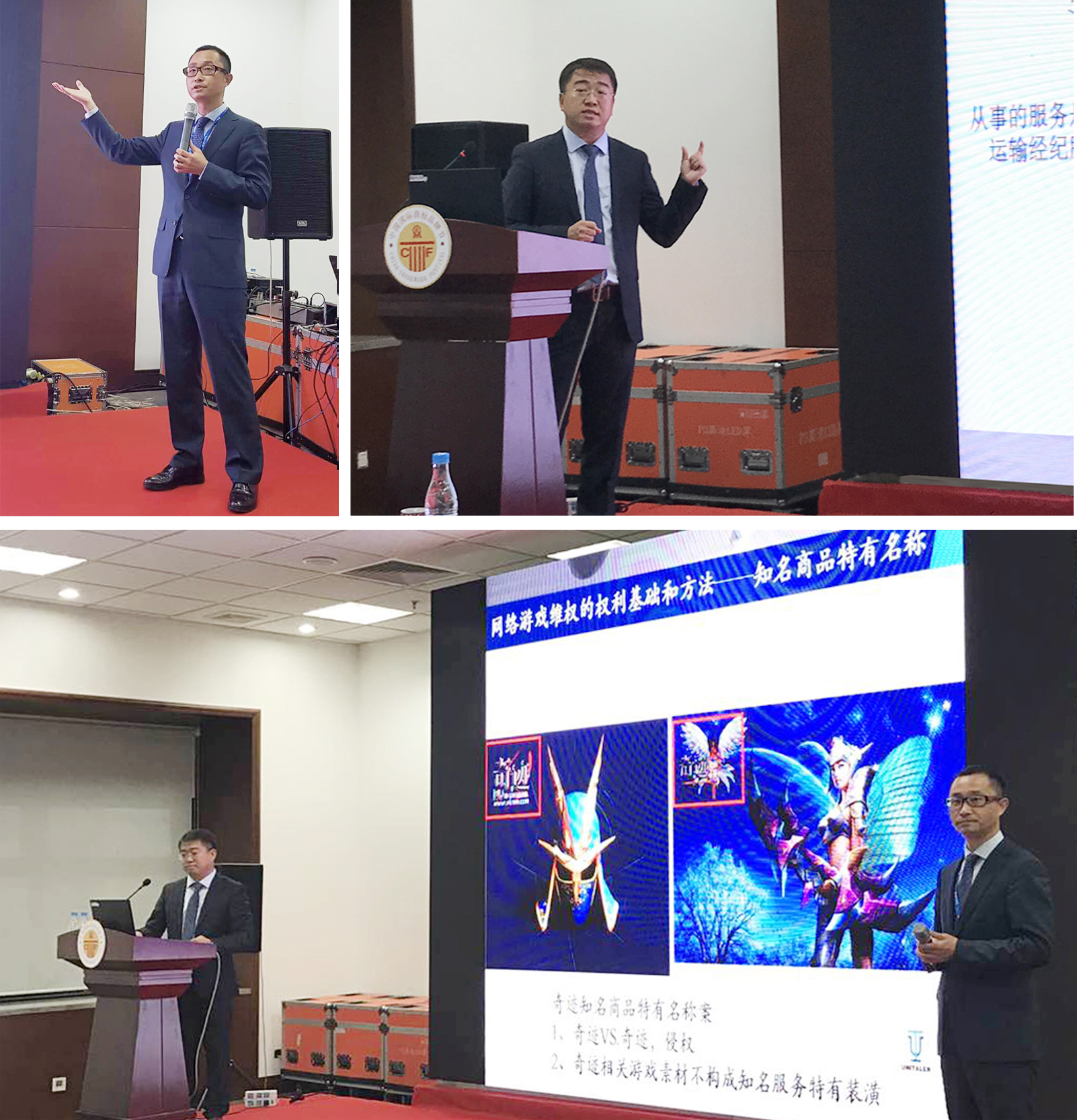 ▲趙雷、張亞洲兩位律師講解當前APP、網絡游戲及影視節目名稱作為商標注冊和保護的難點問題
