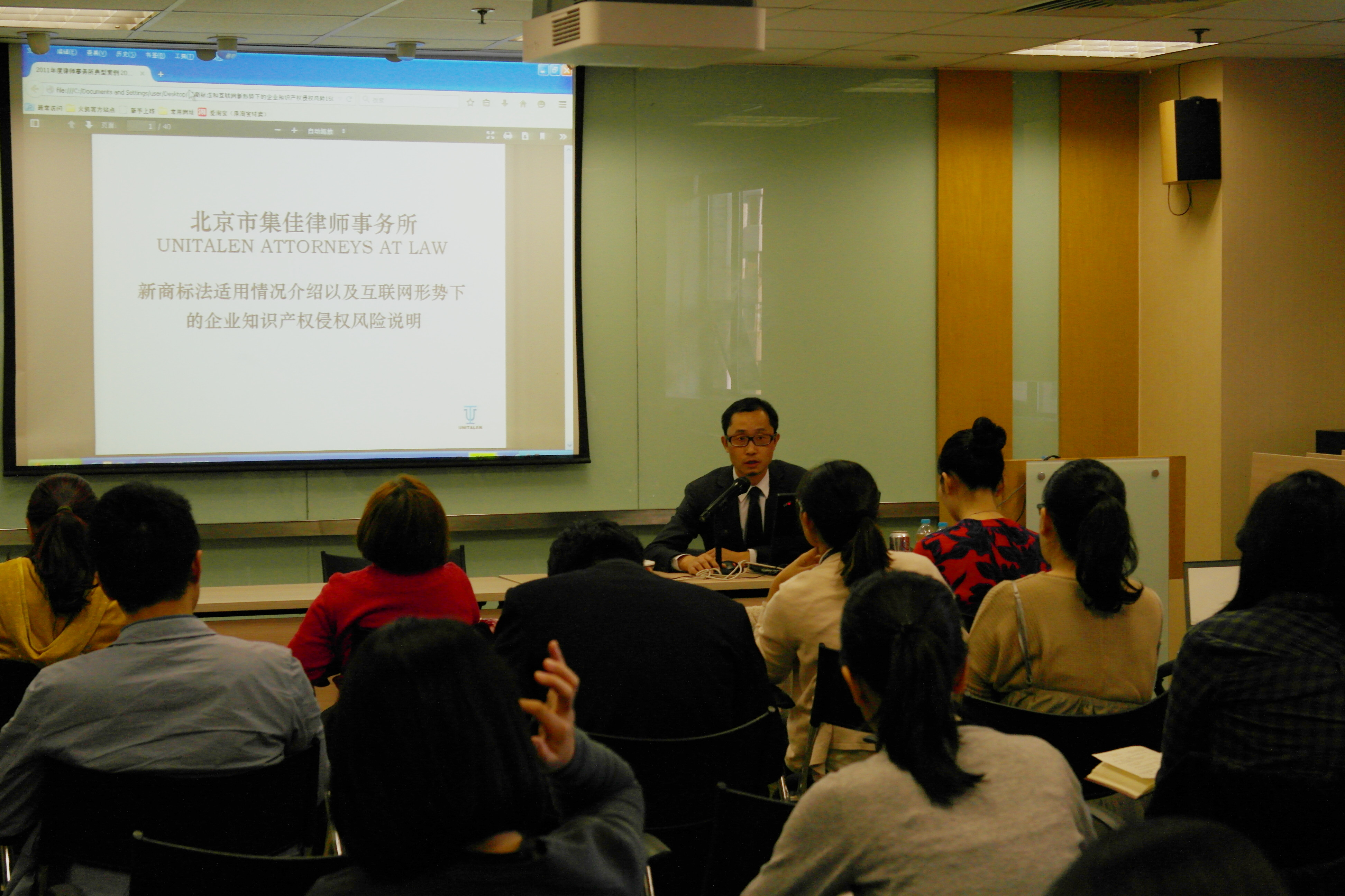 今年被北京市律師協會授予2012-2014年度北京市優秀律師榮譽稱號的集佳律師事務所合伙人、副主任張亞洲律師也在講座上著重介紹了當前新商標法適用情況以及互聯網形勢下的知識產權侵權風險說明,分享了包括2011年“騰訊360之爭”在內的集佳律師事務所近些年訴訟的經典案例,并與大家進行了討論。