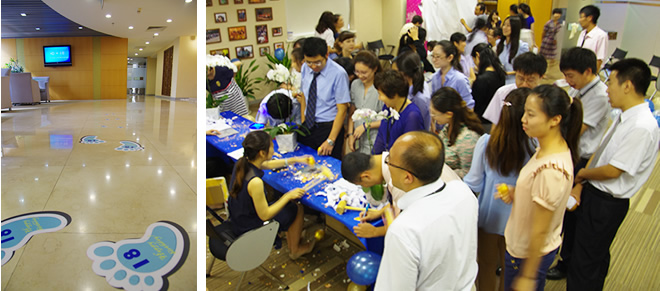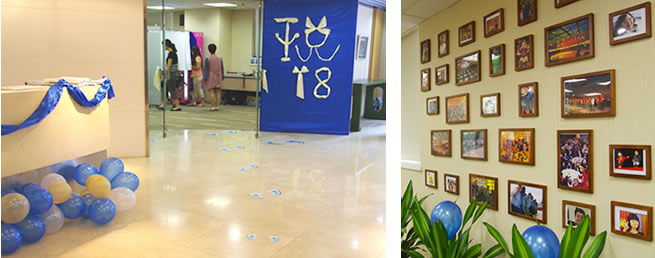 為了迎接這個屬于集佳的節日,集佳北京總部被妝點得典雅而隆重,亦不乏朝氣與活力。藍色作為集佳的標志色,在這一天,出現在了前臺、出現在了辦公區、出現在了會客區,也出現在了每位員工的身上——藍色的服裝、藍色的領帶或藍色的配飾,甚至彰顯活力的藍色絲巾、藍色妝容……得體而不失靈動,使節日氣氛洋溢在整個集佳。