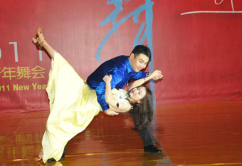 1月28日下午,2011集佳年會盛裝而來。隨著Moon River華爾茲音樂的響起,黑暗中一對舞者在追光燈下優(yōu)雅起舞,一串輕柔靈巧的傾斜、擺蕩和旋轉(zhuǎn)動(dòng)作緊密連接,當(dāng)目光定格在經(jīng)典華爾茲造型時(shí),一段現(xiàn)代舞舞曲又讓光束追到一對年輕人動(dòng)感十足的表演,而后響起的恰恰舞曲,又讓所有人的目光聚焦到了一組熱辣激情的洽洽表演,在掀起了全場熱烈掌聲的同時(shí),也拉開了集佳2011年會的序幕。