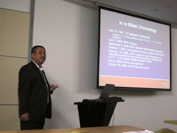 2008-12-0211月28日下午,張江高科技園區(qū)系列知識產(chǎn)權(quán)講座第六講在上海浦東新區(qū)張江藥谷大廈如期舉行。本次講座由美國博欽律師事務(wù)所駐洛杉磯代表處律師唐磊擔任主講,就Bilski案例與商業(yè)方法專利,為在場20余家企業(yè)相關(guān)從業(yè)人員做了精彩解析。
