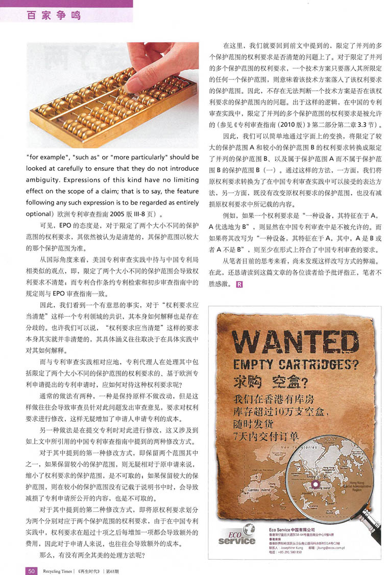 《再生時(shí)代》:關(guān)于權(quán)利要求中“限定了兩個(gè)大小不同的保護(hù)范圍”問題的探討