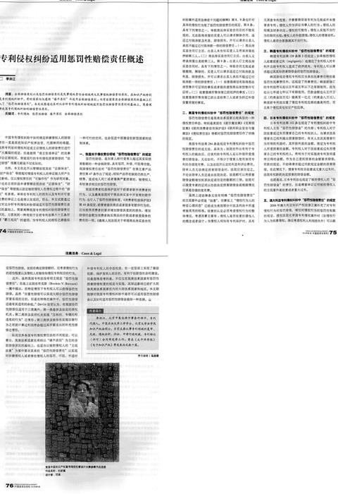 《中國發(fā)明與專利》:專利侵權(quán)糾紛適用懲罰性賠償責(zé)任概述