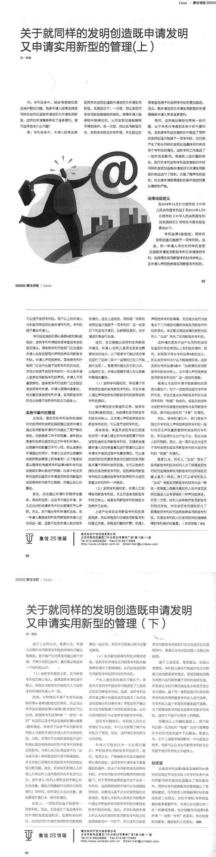 《電子知識產權》:關于就同樣的發明創造既申請發明又申請實用新型的管理