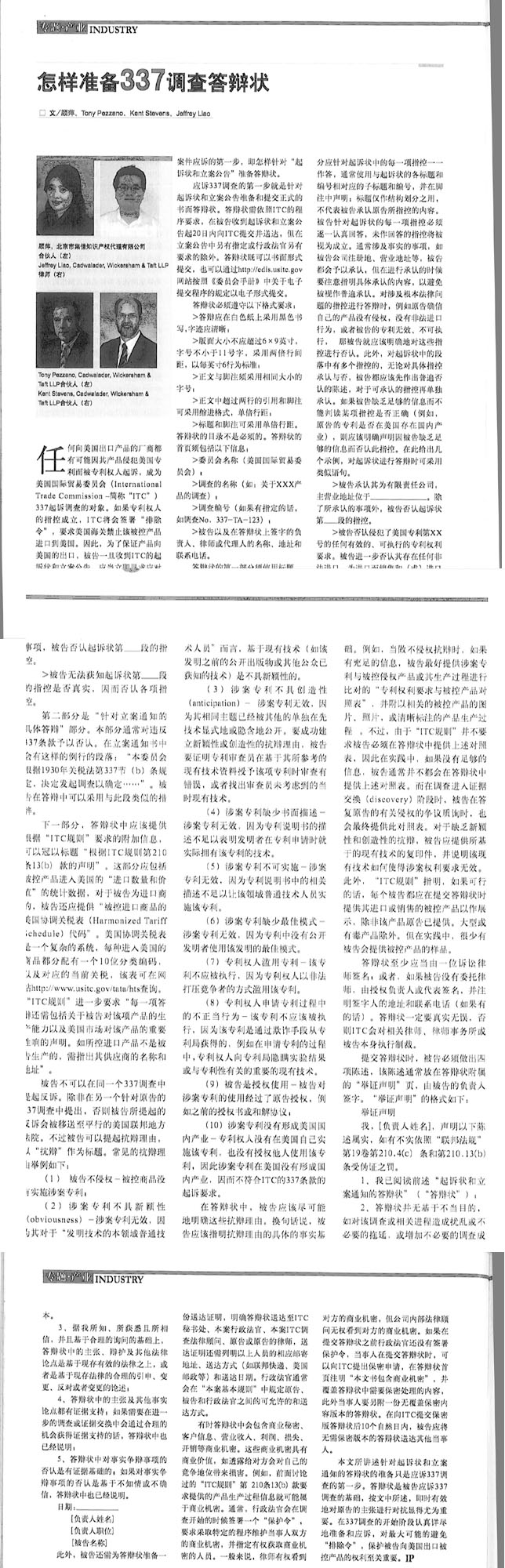 《China IP》:怎樣準備337調查答辯狀