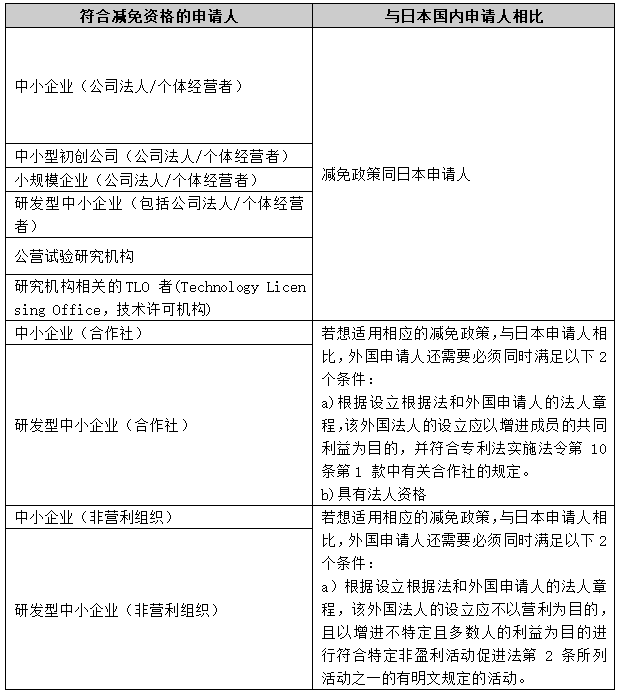 對于外國申請人來說,其實審請求費和專利年費對應(yīng)日本國內(nèi)申請人政策如下: