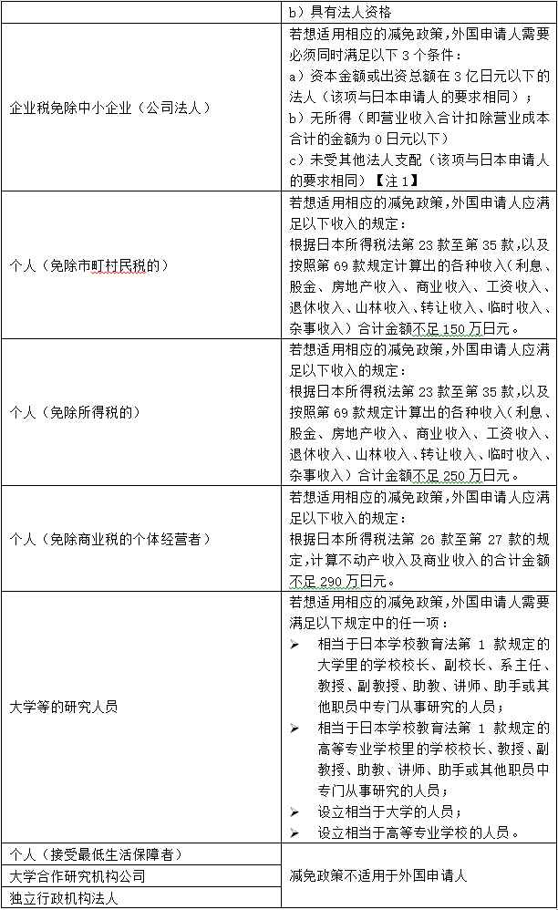 ●符合減免資格的申請人