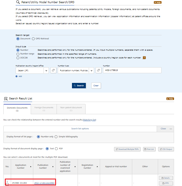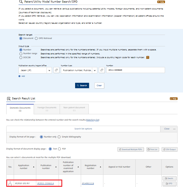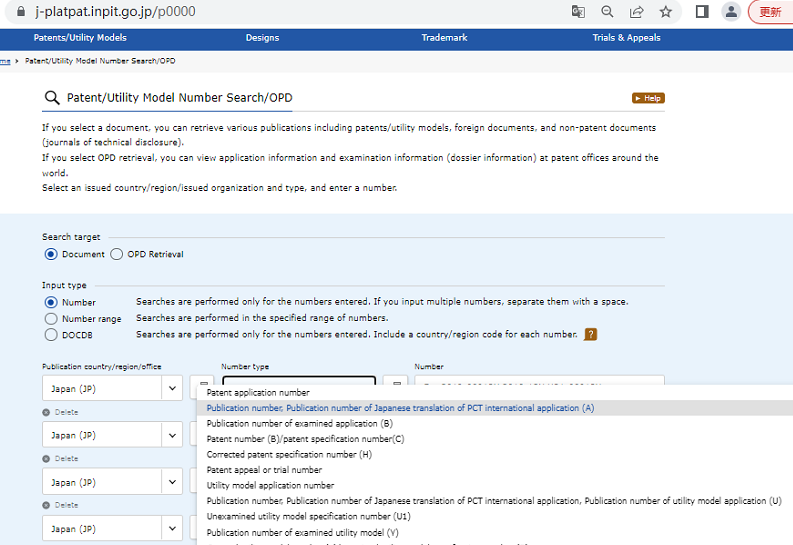 例如,在已知申請公開號的情況下,通常可以通過Patent/Utility Model Number Search/OPD或Simple Search等方式進行檢索。