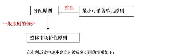 美國在相關(guān)的判例中確立了一套相應(yīng)的規(guī)則。早在1953年,美國最高法院便在判決中提及,不考量專利是否涵蓋整個機(jī)器或是機(jī)器的改良而用相同規(guī)則來計算損害賠償,是個很嚴(yán)重的錯誤。至1984年的Garretson v. Clark案,這一做法進(jìn)一步確立,即:在計算合理的許可費(fèi)時,不應(yīng)該以侵權(quán)產(chǎn)品的總價作為計算基礎(chǔ),如果專利只占了產(chǎn)品或服務(wù)的一小部分,法院應(yīng)該以專利所涉及的產(chǎn)品利益部分作為判決基礎(chǔ),此之謂“分配原則”。