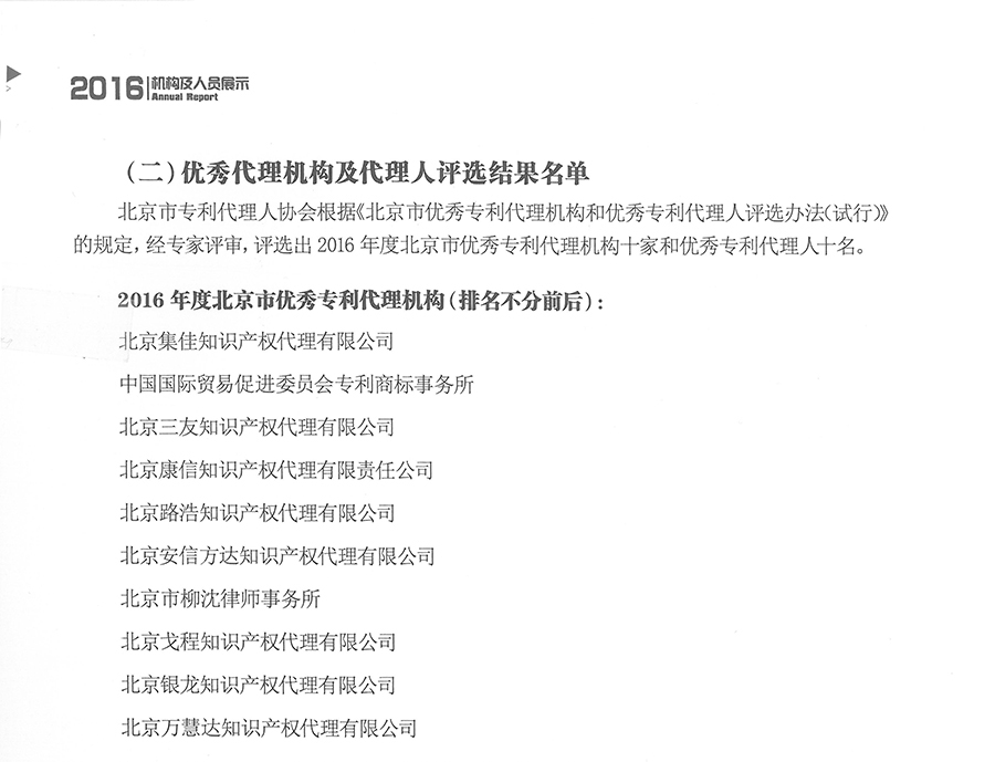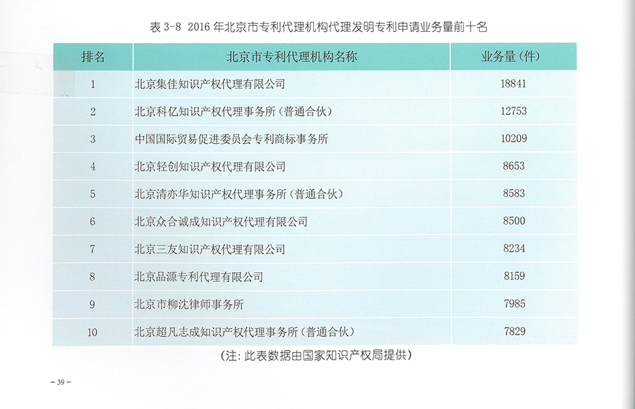 2016北京市專利代理年報發布 集佳代理發明專利申請量蟬聯榜首