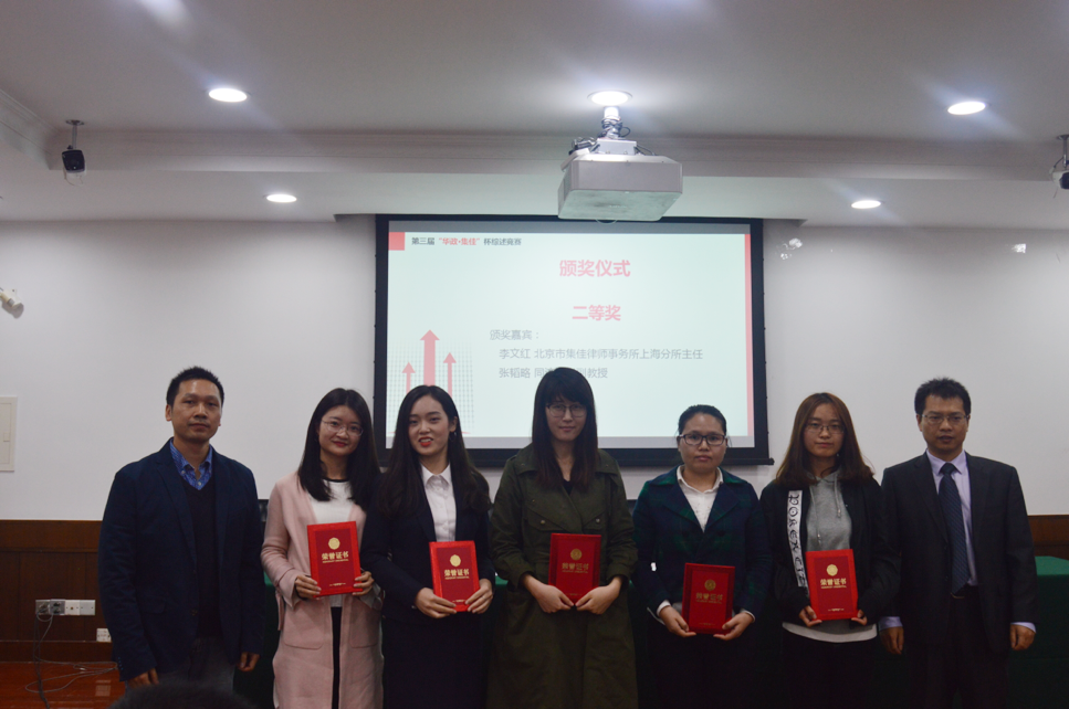 2017年11月12日下午1點(diǎn)半,第三屆“華政·集佳”杯綜述競(jìng)賽落下帷幕,競(jìng)賽閉幕儀式在長(zhǎng)寧校區(qū)交誼樓第三會(huì)議室進(jìn)行,包括頒獎(jiǎng)儀式和經(jīng)驗(yàn)交流大會(huì)兩個(gè)環(huán)節(jié)。
