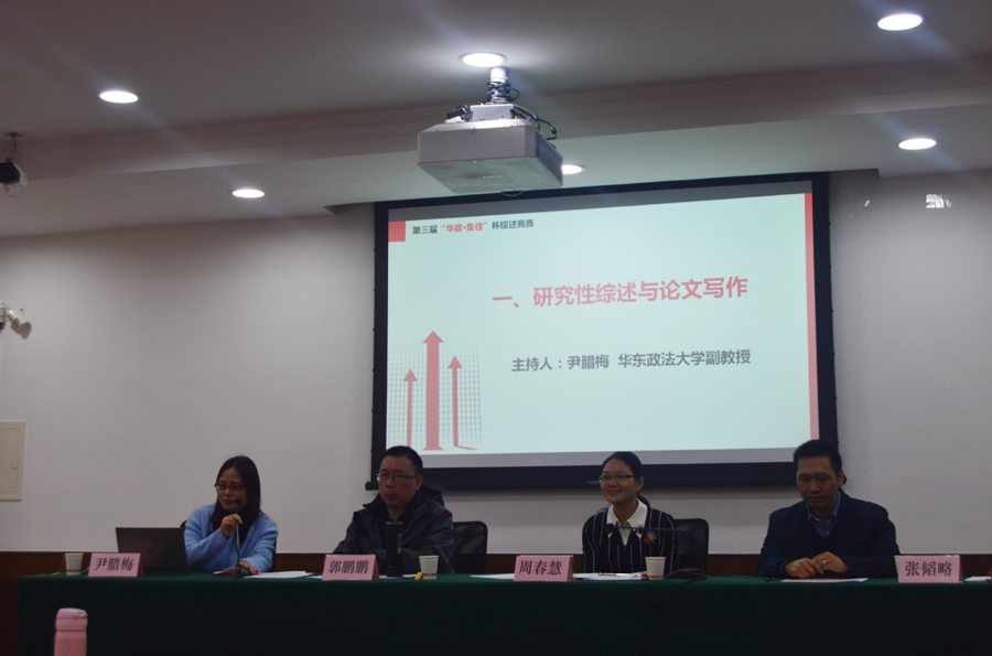 交流環(huán)節(jié)分為兩部分,第一部分主題為“研究性綜述與論文寫作”,由尹臘梅副教授擔(dān)任主持。同濟(jì)大學(xué)張韜略副教授、《電子知識(shí)產(chǎn)權(quán)》周春慧編輯與南京理工大學(xué)郭鵬鵬副教授紛紛結(jié)合自己學(xué)術(shù)研究與工作經(jīng)歷,闡明了綜述性文章寫作的重要性,并分享自己的撰寫經(jīng)驗(yàn)與心得。第二部分主題為“綜述寫作經(jīng)驗(yàn)分享”,由華東政法大學(xué)研究生李旭穎擔(dān)任主持。中南財(cái)經(jīng)政法大學(xué)李安同學(xué)、上海交通大學(xué)張斯瑋同學(xué)、華東政法大學(xué)姚藝同學(xué)、華東政法大學(xué)李若源同學(xué)結(jié)合自己的獲獎(jiǎng)綜述作品,對(duì)撰寫過程中的心得經(jīng)驗(yàn)進(jìn)行了分享。