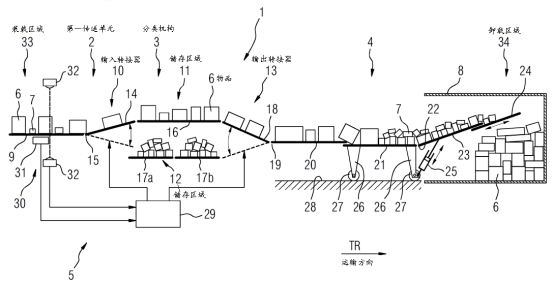 申請號為 2014800100027,發明名稱為用于運輸物品的設備和方法的專利申請描述了一種用于將物品沿運輸方向從裝載區域運輸至卸載區域的運輸設備,其中權利要求1的內容如下: