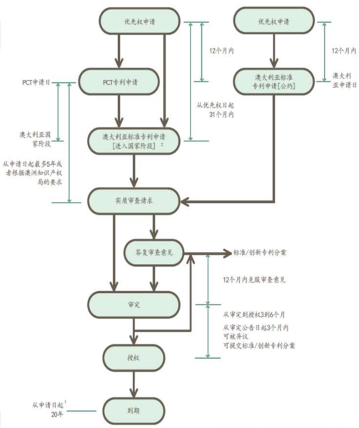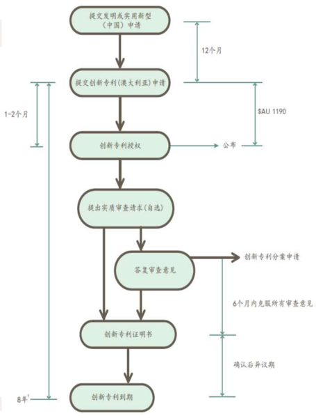 標(biāo)準(zhǔn)專(zhuān)利:可以通過(guò)PCT/CP提交澳大利亞標(biāo)準(zhǔn)專(zhuān)利新申請(qǐng),并在5年內(nèi)提出實(shí)質(zhì)審查(PCT從PCT國(guó)際申請(qǐng)日起算,CP從澳大利亞申請(qǐng)日起算)。在收到第一次審查意見(jiàn)后12個(gè)月內(nèi)克服所有缺陷,克服缺陷后進(jìn)入審定,審定后3-6個(gè)月授權(quán)。標(biāo)準(zhǔn)專(zhuān)利保護(hù)期限是20年(藥物、藥品專(zhuān)利保護(hù)期限為25年)。