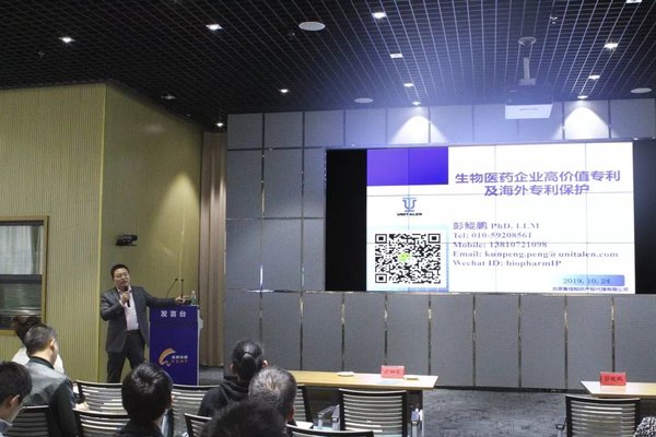 集佳合伙人、專利代理師、中華全國專利代理人協(xié)會(huì)職業(yè)培訓(xùn)師彭鯤鵬博士為參會(huì)企業(yè)作“生物醫(yī)藥企業(yè)高價(jià)值專利及海外專利”主題培訓(xùn)。彭鯤鵬博士對(duì)各國專利局在生物醫(yī)藥領(lǐng)域的實(shí)踐有深入了解,并在涉外專利申請(qǐng)方面擁有豐富經(jīng)驗(yàn)。他從美國創(chuàng)新藥的專利懸崖熱點(diǎn)問題切入引起參會(huì)人員共鳴,并對(duì)中國創(chuàng)新和仿制藥制度到藥品審評(píng)審批制度改革進(jìn)行介紹,同時(shí)圍繞藥品專利挑戰(zhàn)(專利跟蹤預(yù)警、分析、應(yīng)對(duì)策略)、專利保護(hù)的新思路、高價(jià)值專利保護(hù)、海外專利保護(hù)策略等方面逐一展開,針對(duì)企業(yè)目前比較關(guān)注的FTO侵權(quán)風(fēng)險(xiǎn)分析、可專利性分析等進(jìn)行深刻解讀,就生物醫(yī)藥行業(yè)的典型案例進(jìn)行了精彩的解析。