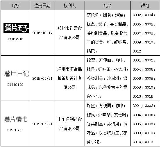 最后,如在先已有眾多包含“薯片”的商標在第30類商品上被核準注冊,如“薯片王子”、“薯片日記”、“薯片情書”等??芍鶕彶橐恢滦栽瓌t,含有中文“巧克力”的商標也同樣應被核準注冊在除“巧克力”等之外的商品上,何況申請商標中的“CHOCOLATE”并不會使相關公眾將其翻譯為中文“巧克力”再加以識別或認讀,因此根本不會對其原料口味等特點產生誤認。