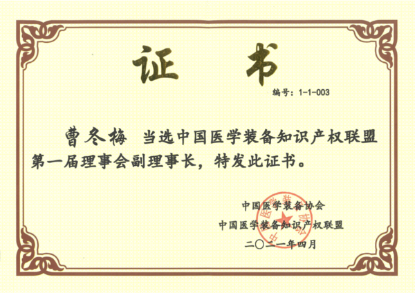 2021年4月10日,中國醫(yī)學裝備知識產(chǎn)權聯(lián)盟(以下簡稱“聯(lián)盟”)成立會暨中國醫(yī)學裝備知識產(chǎn)權發(fā)展論壇在北京成功召開。國家衛(wèi)生健康委、工業(yè)和信息化部、國家知識產(chǎn)權局、中國醫(yī)學裝備協(xié)會、聯(lián)盟發(fā)起單位及醫(yī)療機構、企業(yè)、金融等機構的180余名代表出席此次大會。北京集佳知識產(chǎn)權代理有限公司受邀成為聯(lián)盟第一屆理事會副理事長單位,集佳知識產(chǎn)權顧問曹冬梅當選聯(lián)盟第一屆理事會副理事長。