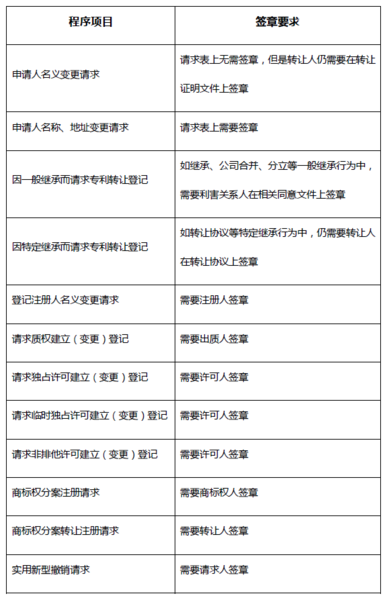 目前,日本專利涉及的行政程序中僅下列程序仍保留簽章要求,其他程序都不再需要提供簽章。對于日本境外的申請人來說,可以用簽字替代簽章,簽字和簽章的規定相同。