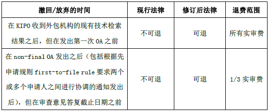 根據(jù)修訂后的專利法,退費(fèi)適用的時間范圍和退款的范圍如下所示: