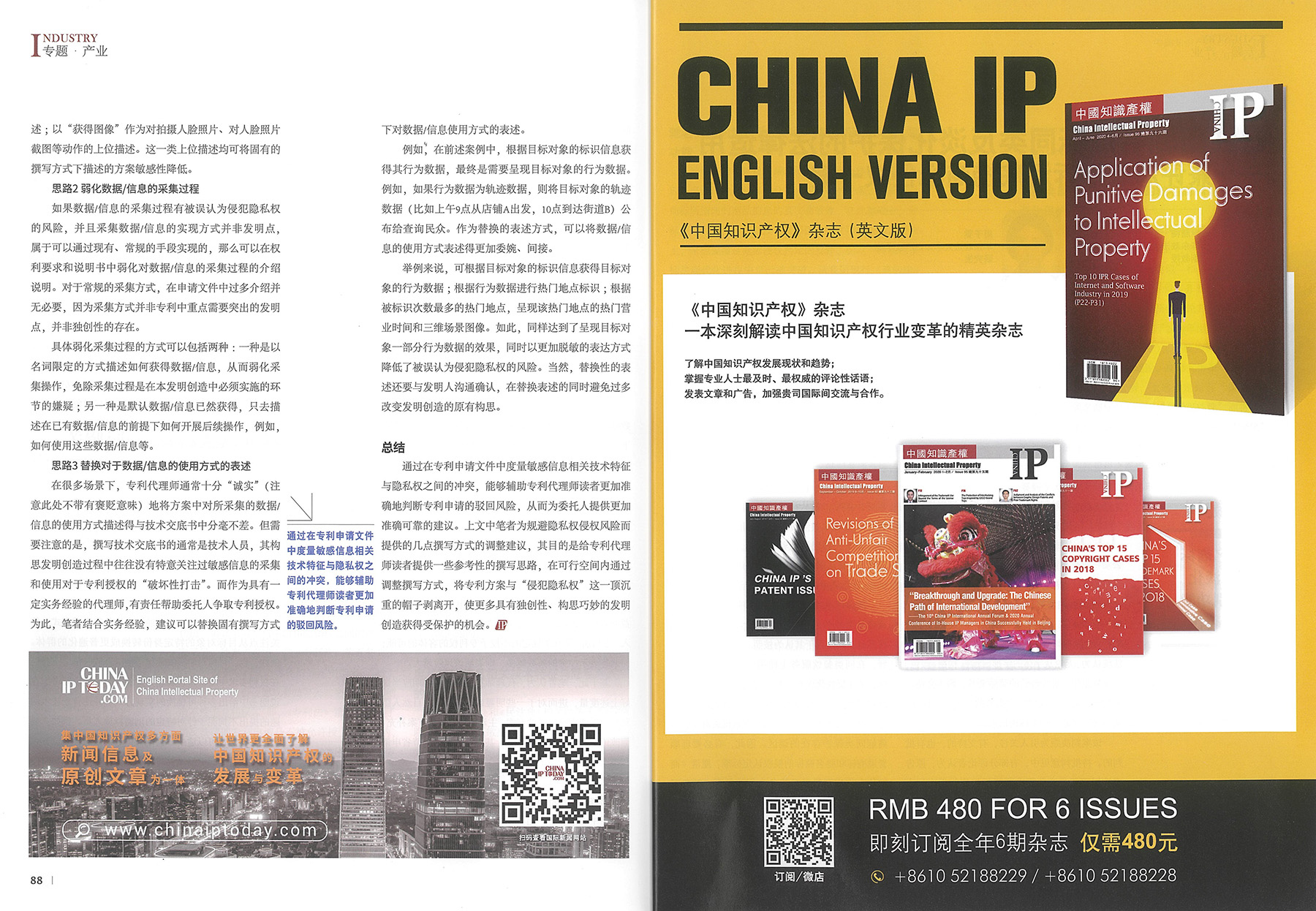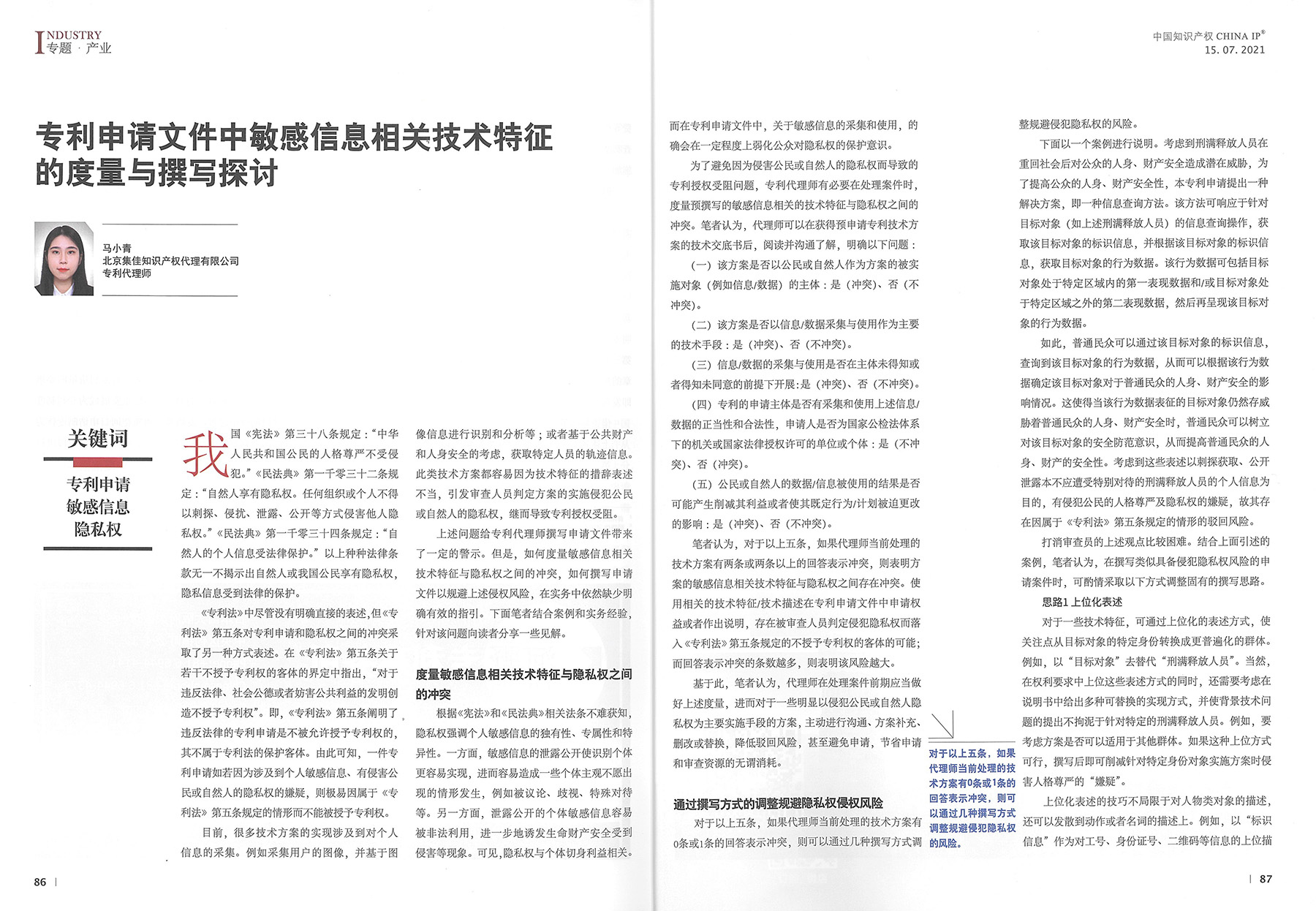 集佳文章《專利申請(qǐng)文件中敏感信息相關(guān)技術(shù)特征的度量與撰寫探討》在《中國(guó)知識(shí)產(chǎn)權(quán)》發(fā)表