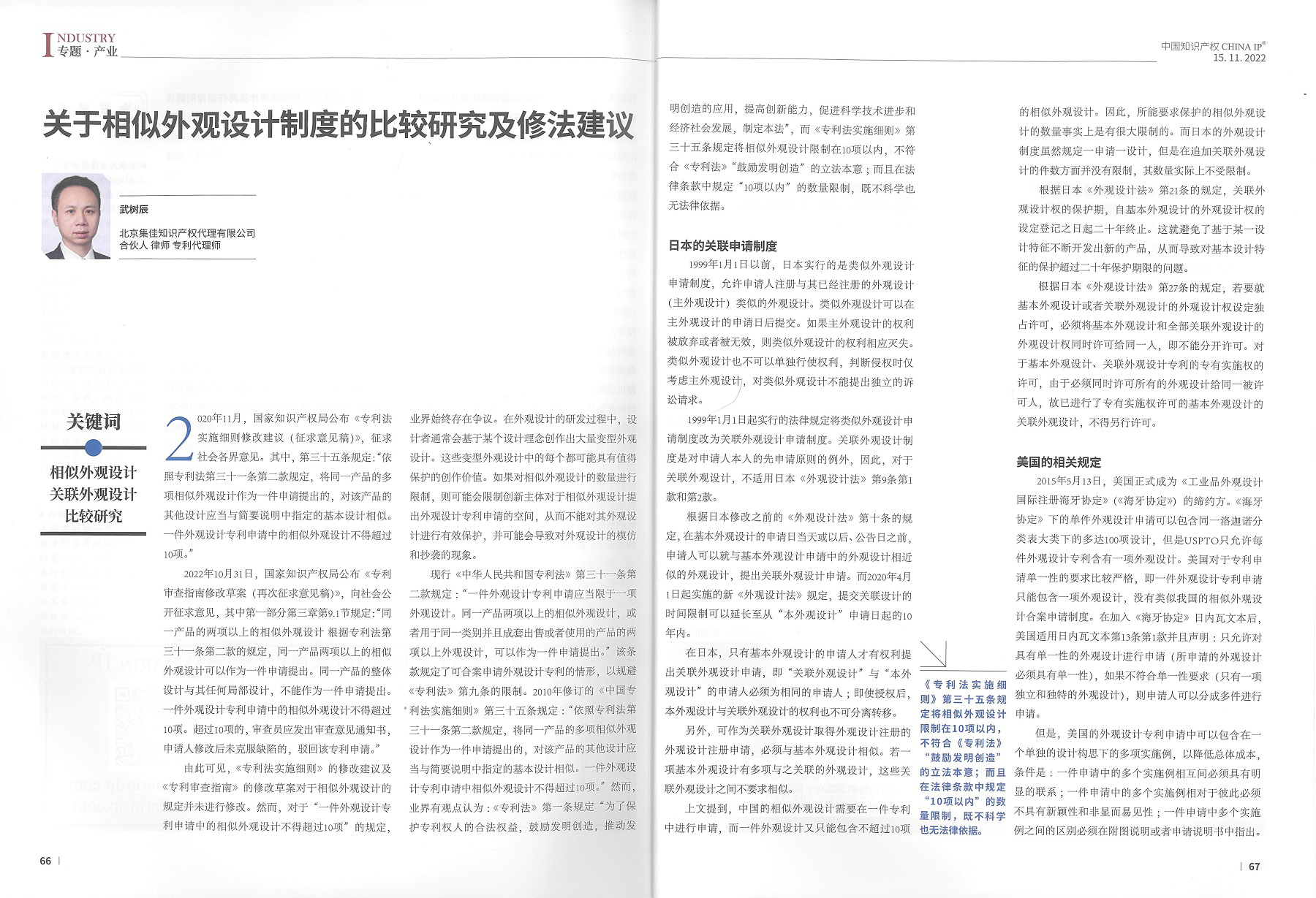 集佳文章《關于相似外觀設計制度的比較研究及修法建議》在《中國知識產(chǎn)權》發(fā)表
