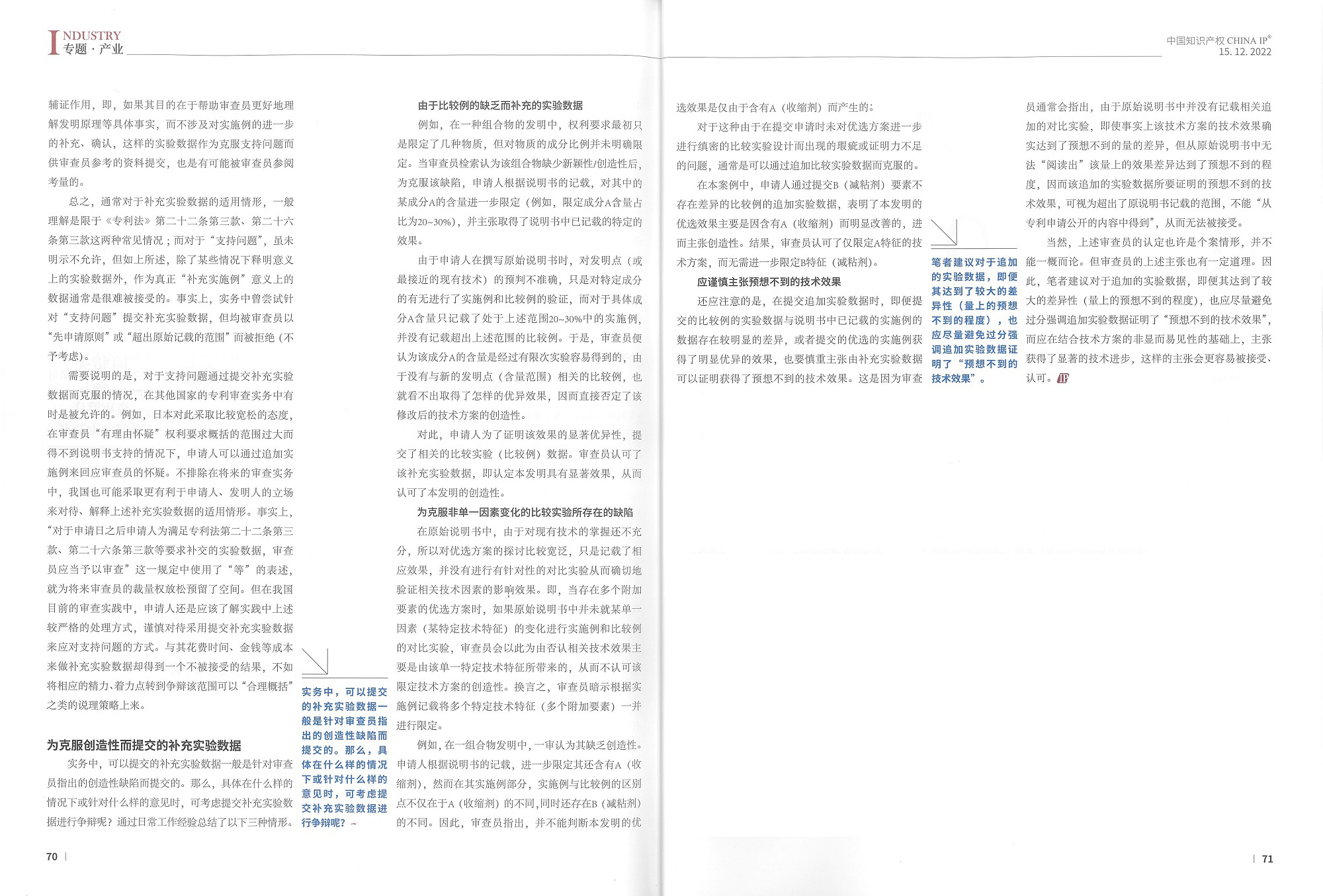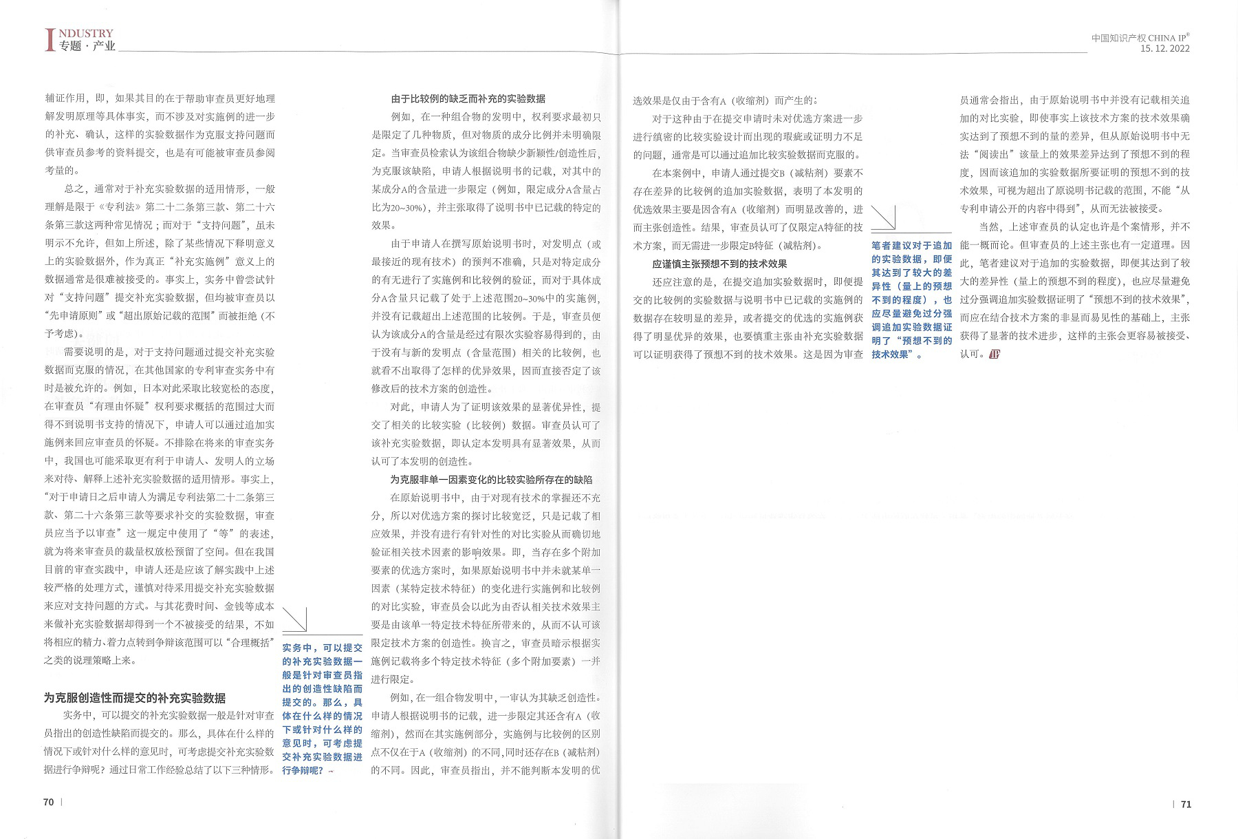 集佳文章《淺議專利審查中追加實驗數(shù)據(jù)的考量》在《中國知識產(chǎn)權(quán)》發(fā)表