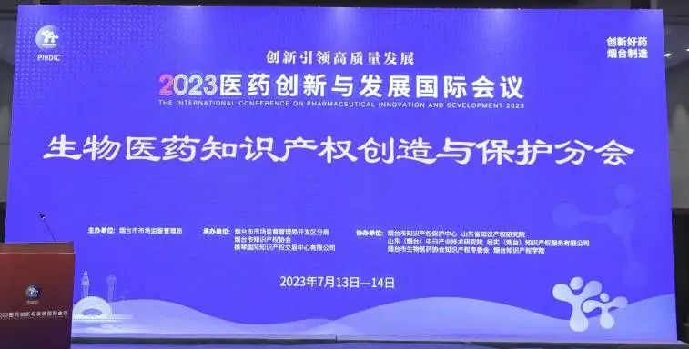 2023醫(yī)藥創(chuàng)新與發(fā)展國際會議由山東省人民政府主辦,中國藥學(xué)會、中國醫(yī)藥創(chuàng)新促進會、中國藥品監(jiān)督管理研究會、山東省市場監(jiān)督管理局共同協(xié)辦,煙臺市人民政府、山東省藥品監(jiān)督管理局共同承辦,大會以“創(chuàng)新引領(lǐng)高質(zhì)量發(fā)展”為主題,聚焦生物醫(yī)藥產(chǎn)業(yè)發(fā)展新機遇、新方向、新路徑,吸引了來自政府部門、研發(fā)機構(gòu)、醫(yī)藥企業(yè)和知識產(chǎn)權(quán)代理機構(gòu)等近400名代表參與研討。生物醫(yī)藥知識產(chǎn)權(quán)創(chuàng)造與保護分會邀請多位資深知識產(chǎn)權(quán)專家從藥品專利糾紛早期解決機制、商業(yè)秘密保護、藥品專利鏈接實施效果觀察、研發(fā)階段實驗設(shè)計對醫(yī)藥專利授權(quán)的重點性等方面發(fā)表了主題演講,為與會的120多家生物醫(yī)藥企業(yè)帶來了一場知識產(chǎn)權(quán)盛宴,為醫(yī)藥領(lǐng)域知識產(chǎn)權(quán)發(fā)展注入了強勁動力。