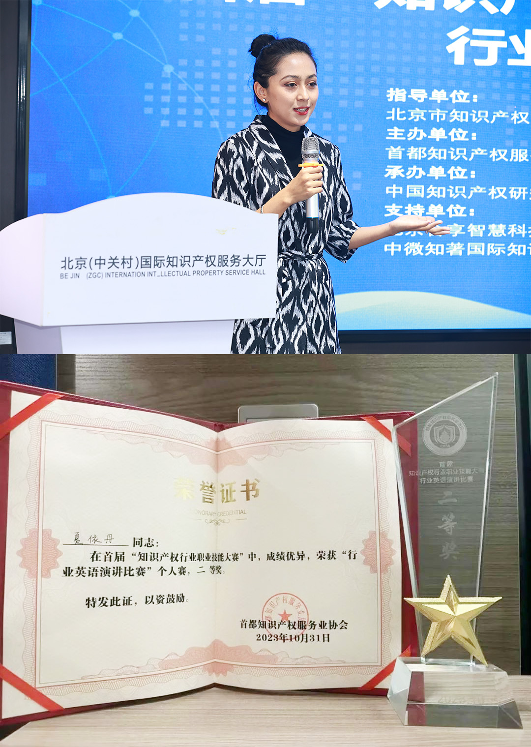 近日,在北京市知識產(chǎn)權(quán)局、中關(guān)村科學(xué)城管委會的指導(dǎo)下,由首都知識產(chǎn)權(quán)服務(wù)業(yè)協(xié)會主辦,中國知識產(chǎn)權(quán)研究會專利專業(yè)委員會、北京(中關(guān)村)國際知識產(chǎn)權(quán)服務(wù)大廳承辦的首屆“知識產(chǎn)權(quán)行業(yè)職業(yè)技能大賽”(以下簡稱“技能大賽”)總決賽成功舉辦。集佳優(yōu)秀青年代理人夏依丹榮獲本屆技能大賽“行業(yè)英語演講比賽”二等獎。