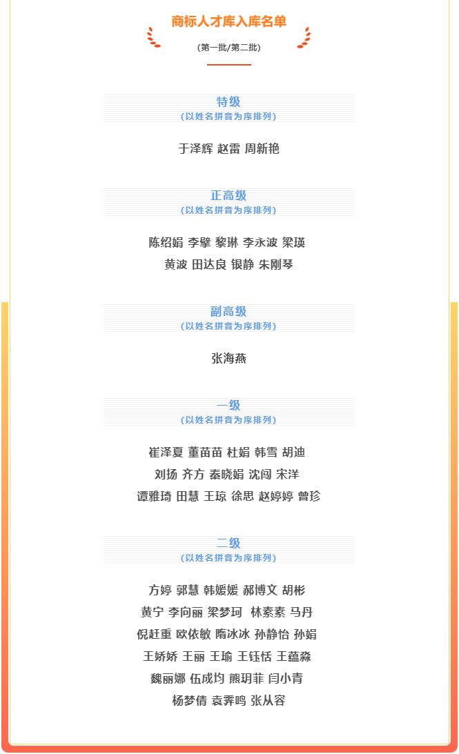 近日,中華商標協(xié)會公布了2023年商標人才庫入庫申報(第二批)合格人員名單,其中,集佳共有23位商標代理人成功入選,包括3位特級、2位正高級、1位副高級、5位一級和12位二級人才。至此,集佳共有56位商標代理人入選了2023年商標人才庫。
