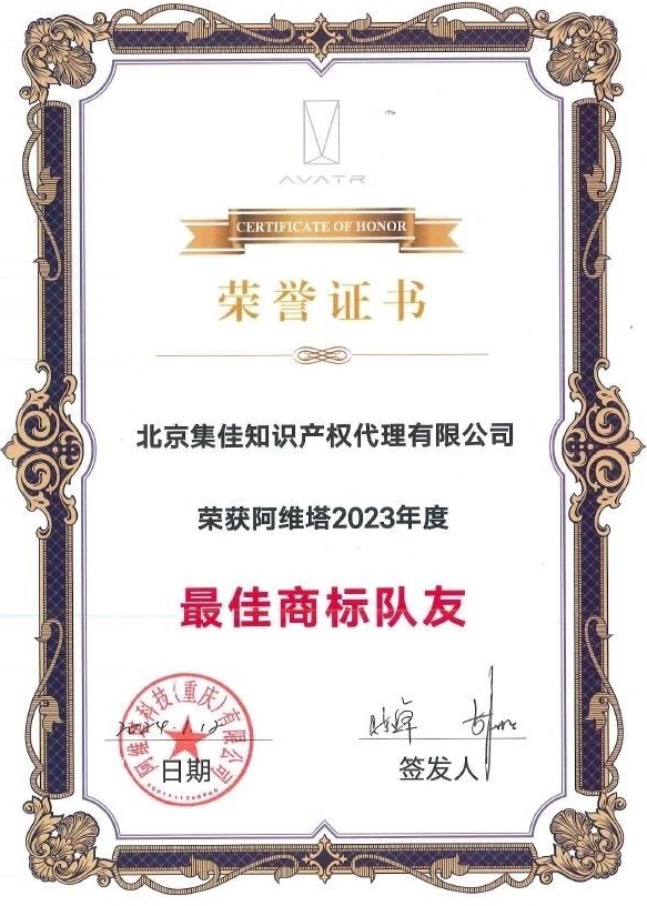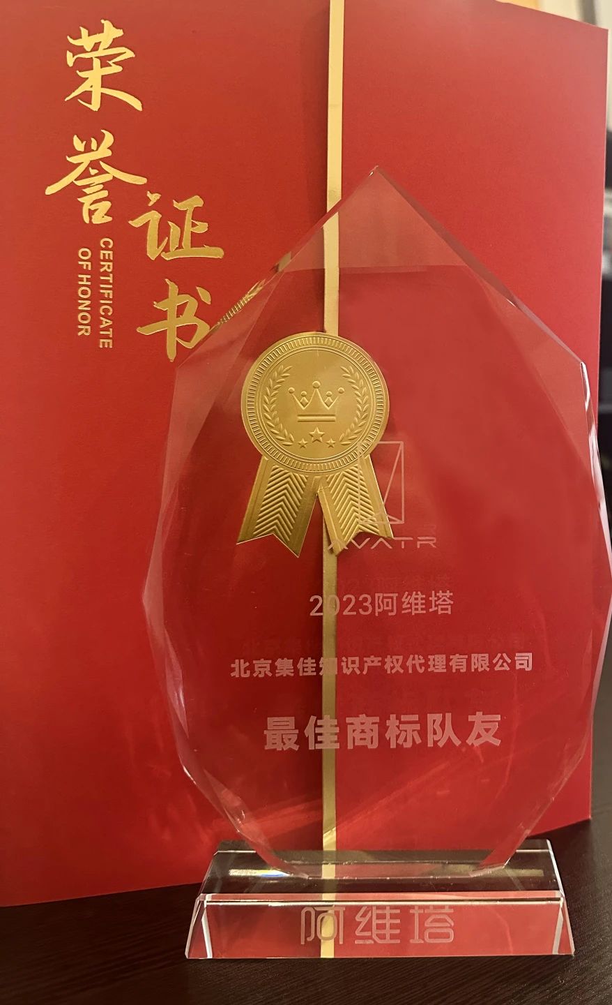 近日,集佳優質服務再次喜獲客戶點贊——阿維塔科技(重慶)有限公司(以下簡稱“阿維塔”)授予集佳2023年度“最佳商標隊友”榮譽稱號