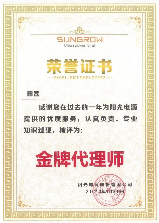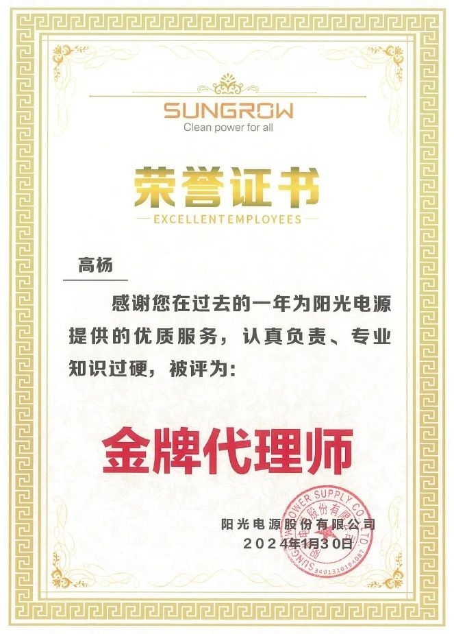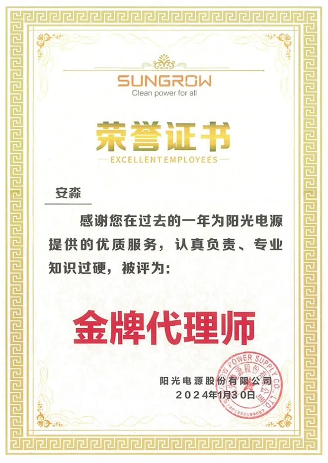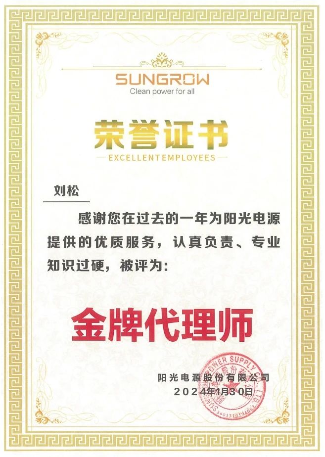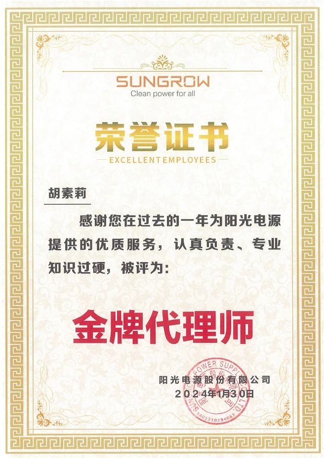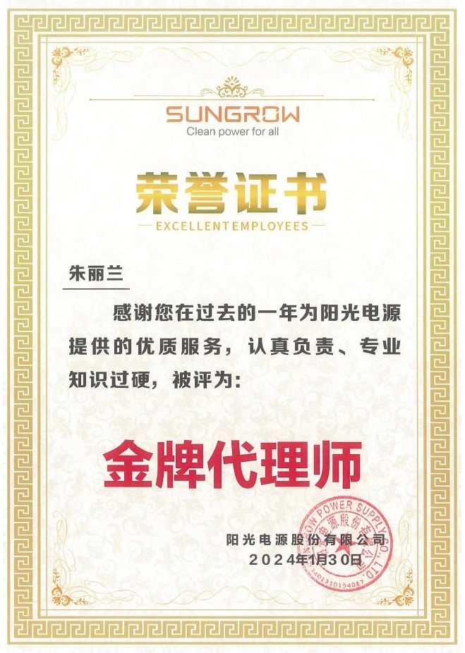 集佳喜獲客戶陽光電源授予“優秀合作伙伴”榮譽稱號