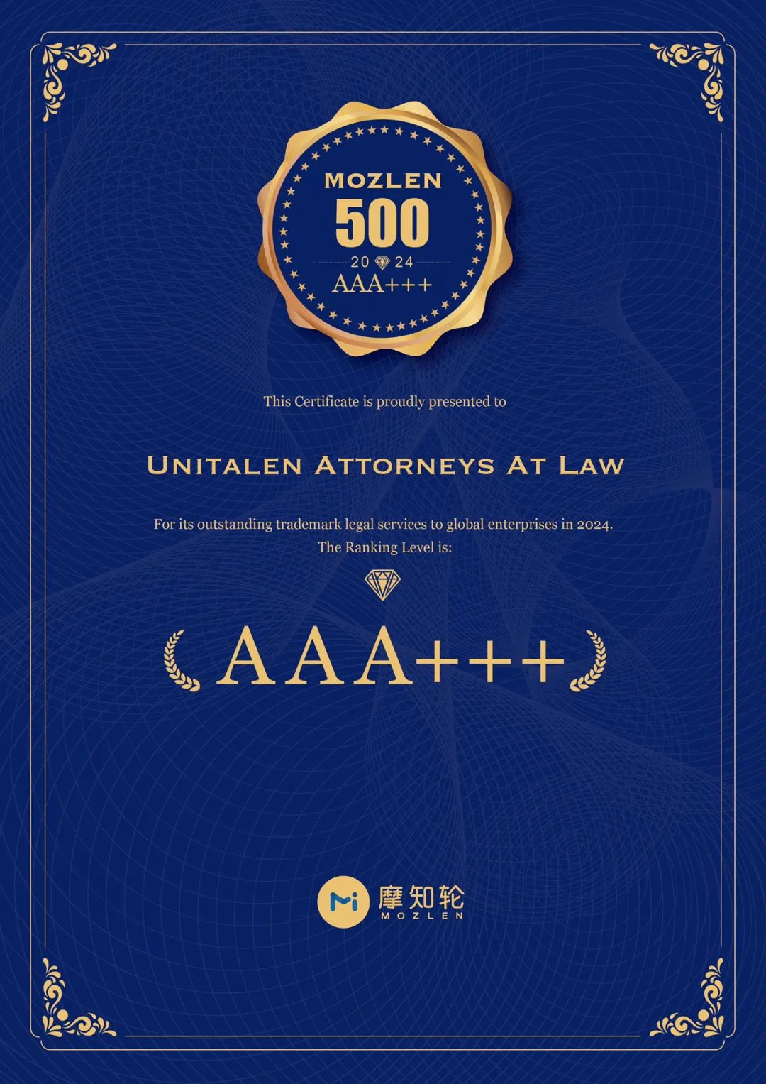 集佳入選2024《MOZLEN500》中國專業涉外商標代理機構榜單TOP 10 “鉆石AAA+++”級
