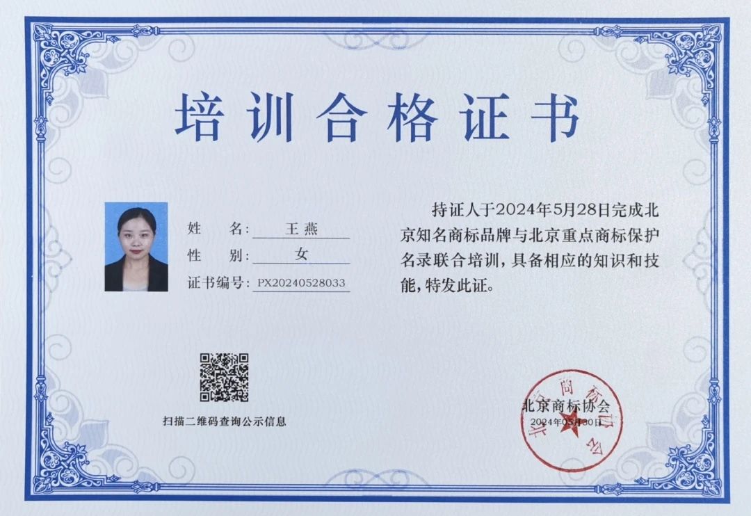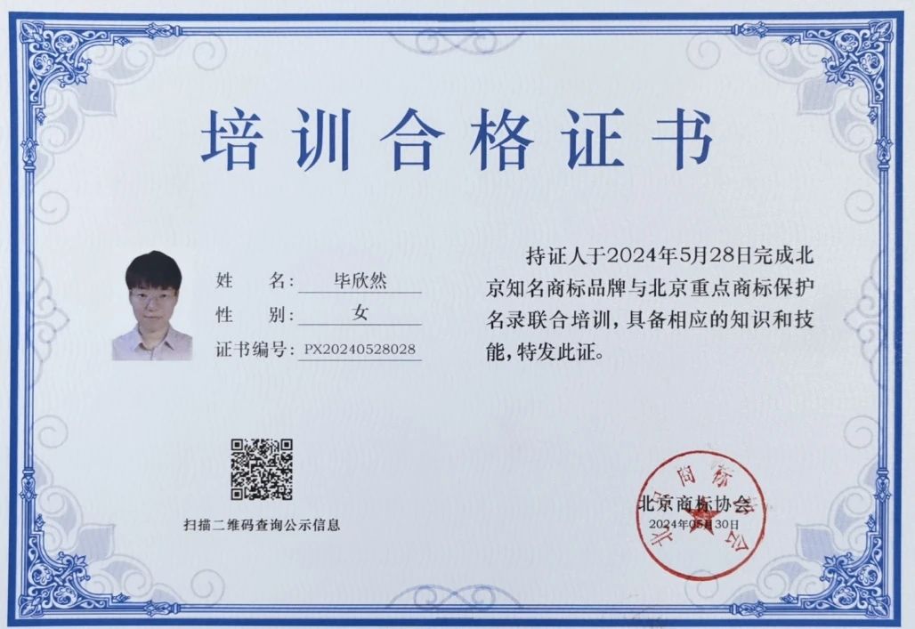 為推進商標申請工作的規范開展,提升申請人員的專業水平與服務能力,更好地服務北京本地企業商標品牌發展,北京商標協會于5月28日舉辦2024年度北京知名商標品牌與北京重點商標保護名錄聯合培訓。集佳畢欣然、代健、胡彬、劉揚、馬寧、王燕、張甜、張奕翔、朱剛琴等9位商標代理人與知識產權顧問參加本次培訓并獲頒合格證書,成績優異的學員還將被納入北京商標品牌人才儲備庫。
