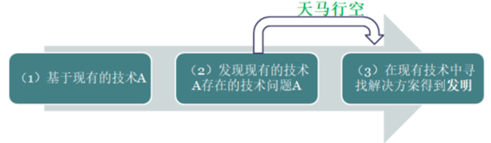 發(fā)明創(chuàng)造的實際產(chǎn)生過程通常可以模型化為:基于現(xiàn)有的技術A,發(fā)現(xiàn)技術A中存在的技術問題A’,技術人員隨機在現(xiàn)有技術中尋找可以解決該技術問題的現(xiàn)有技術手段,經(jīng)過實驗和驗證,最終得到可以解決該技術問題A’的技術方案,即發(fā)明創(chuàng)造本身。這個過程中,技術人員的思維是“天馬行空”式不受限制的。