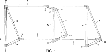 無被訴決定針對權利要求1的創(chuàng)造性主要涉及廣州市毅拓體育用品有限公司(簡稱毅拓公司)、紹興市太一文具有限公司(簡稱太一公司)提交的兩份證據(jù),附件1,公開號為GB2422322A的英國專利,公開一種充氣運動球門。附件3,授權公告號為CN2230865Y的中國實用新型專利,其公開了一種上水管接頭。