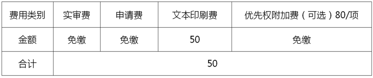 表1 國內(nèi)發(fā)明專利申請費用明細(單位:元)