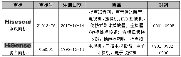申請理由和法律依據:申請人的“HISENSE”商標為中國馳名商標,爭議商標構成對申請人“HISENSE”馳名商標的摹仿,易使申請人的利益可能受到損害,請求依據《商標法》第十三條第三款的規定,依法裁定宣告爭議商標無效。